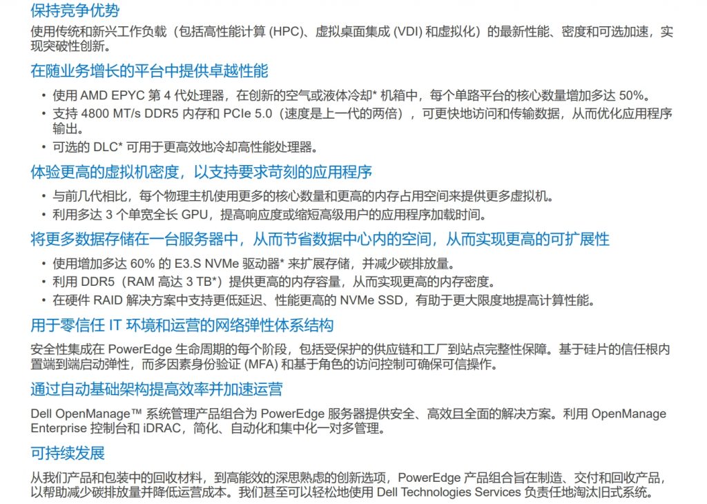 - 在創(chuàng)新的空氣或液冷機(jī)箱中,使用 AMD EPYC™ 第 4 代處理器,以便每個單路平臺的核心數(shù)量增加多達(dá) 50%